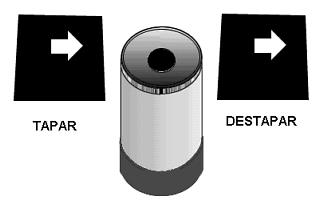 Forma de realizar la obturación manual.Usando este sistema he advertido una peculiaridad que debe tenerse en cuenta: Si se trata de conseguir tiempos de obturación muy cortos (inferiores a medio segundo), además de resultar difícil de medir, ocurre que el pequeño lapso de tiempo que se tarda en desplazar la lámina fuera de la abertura del telescopio, afecta negativamente provocando fenómenos de interferencia, ya que durante ese instante se está usando de forma parcial la abertura del telescopio. Ello se traduce en una desigual nitidez en la imagen: la luna aparece borrosa hacia el lado de la imagen que ha estado más tiempo cubierto por la lámina. Para obviar este inconveniente, efectuaremos la salida y entrada de la lámina ante la luz del tubo por lados opuestos y tratando de hacerlo lo más rápido posible, pero sin reducir el tiempo que la abertura debe estar descubierta. Es decir, nuestra mano se debe parecer lo más posible al obturador de la cámara: descubrir con rapidez la película, hacer la exposición el tiempo exacto y por último cerrar la abertura con igual rapidez comenzando por el lado opuesto. (Ver figura 1). Para aquellos que deseen perfeccionar este sistema daré la idea de construir un obturador aéreo. Consistiría en una especie de "guillotina" que haría con mayor precisión y rapidez este gesto.