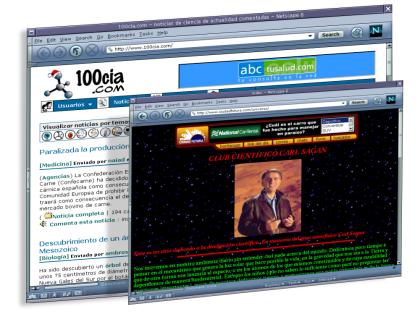 Partiendo del éxito que este esquema le ha dado a SlashDot y a su homónimo español BarraPunto, nace 100cia, una página web que ofrece desde el verano comientarios de actualidad científica en castellano, una iniciativa de Alex Dantart.