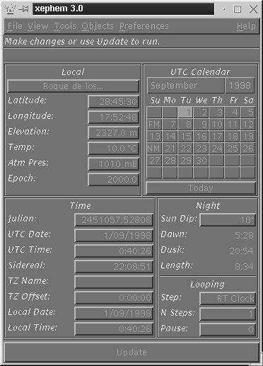 XEphem es un planetario electrónico disponible en entornos gráficos de tipo Unix, como el X-Window. Posee unas avanzadas opciones de configuración que lo convierten en un rival muy poderoso enfrente del SkyMap, el ECU o incluso el Guide y el MegaStar.